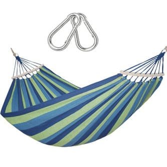 - Dimensiunea: Asigura-te ca hamacul are dimensiunea potrivita pentru a te simti confortabil. Hamacurile mai mari sunt ideale pentru doua persoane.