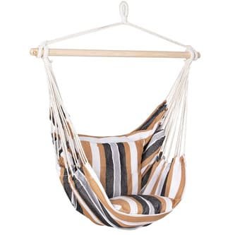 - Hamacuri scaun: Acestea sunt concepute pentru a fi suspendate de tavan sau de o rama si ofera un loc comod de sezut si de balansare.